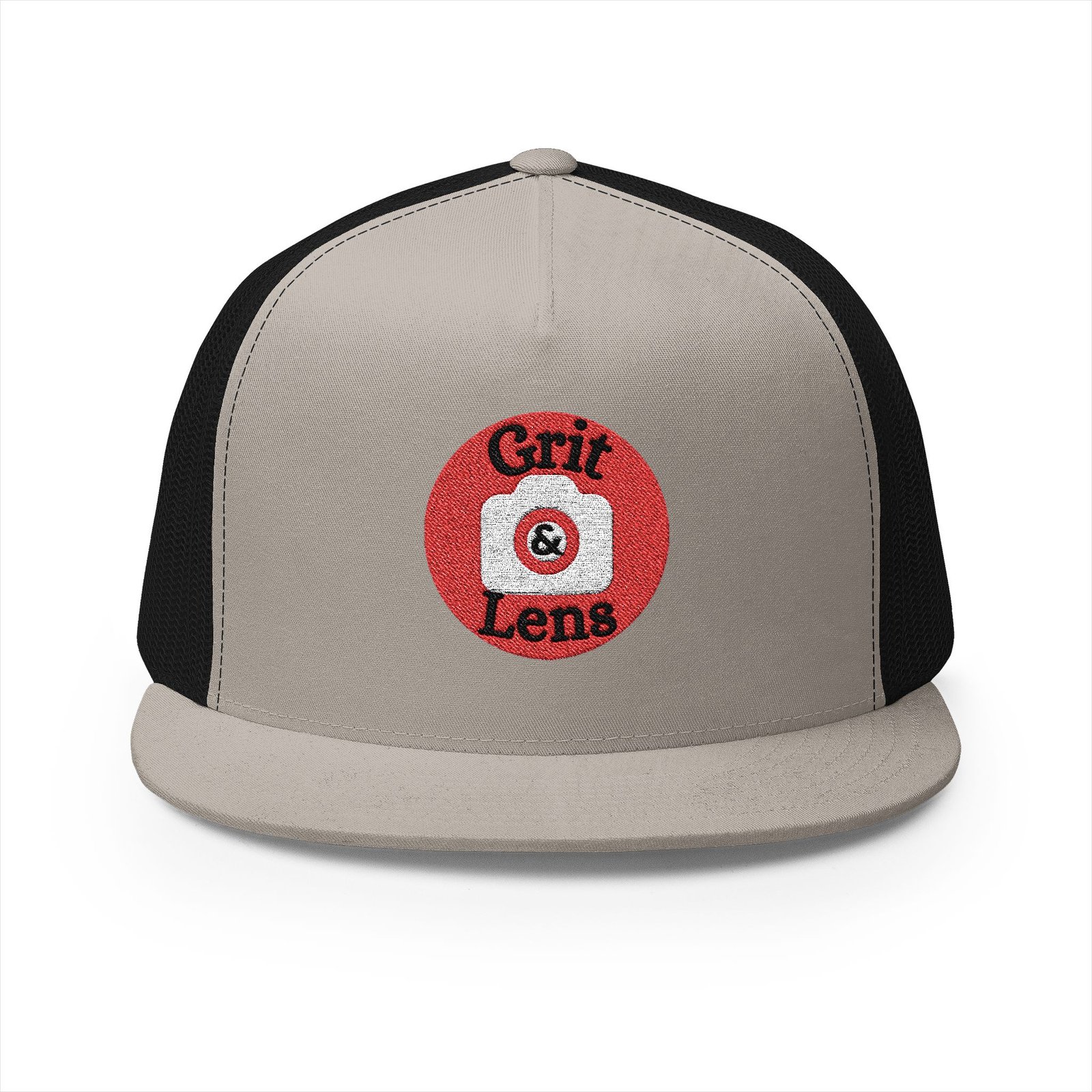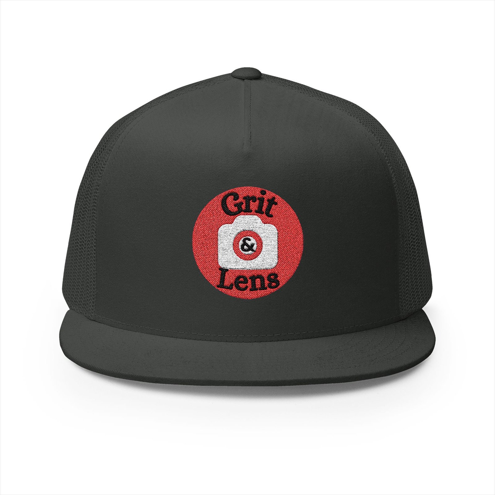 Be the first to review “Embroidered Grit & Lens Flat Trucker Hat”